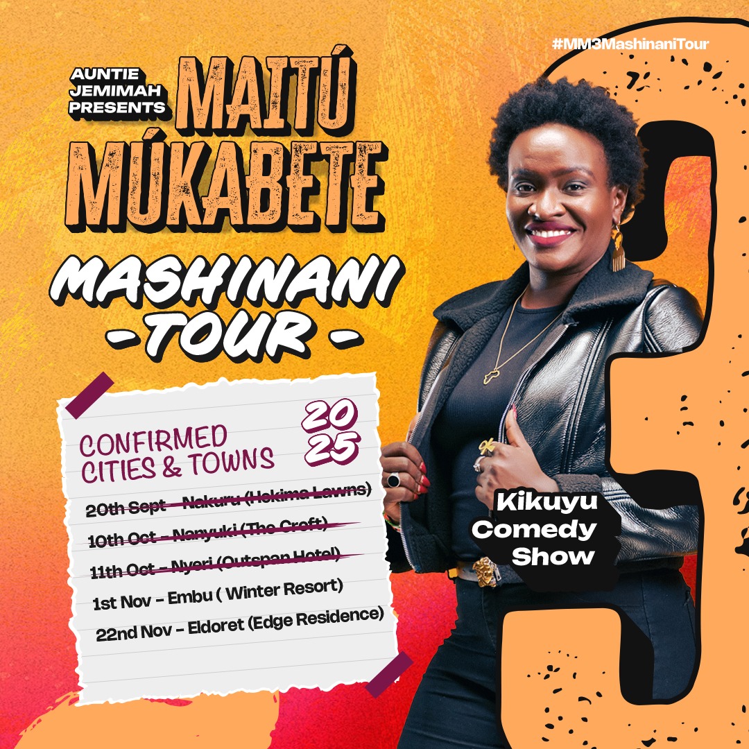 Maitú Múkabete 3 hits the road! Join the Mashinani Tour—Auntie Jemimah live in a riveting stand-up show of love, laughter & tears!