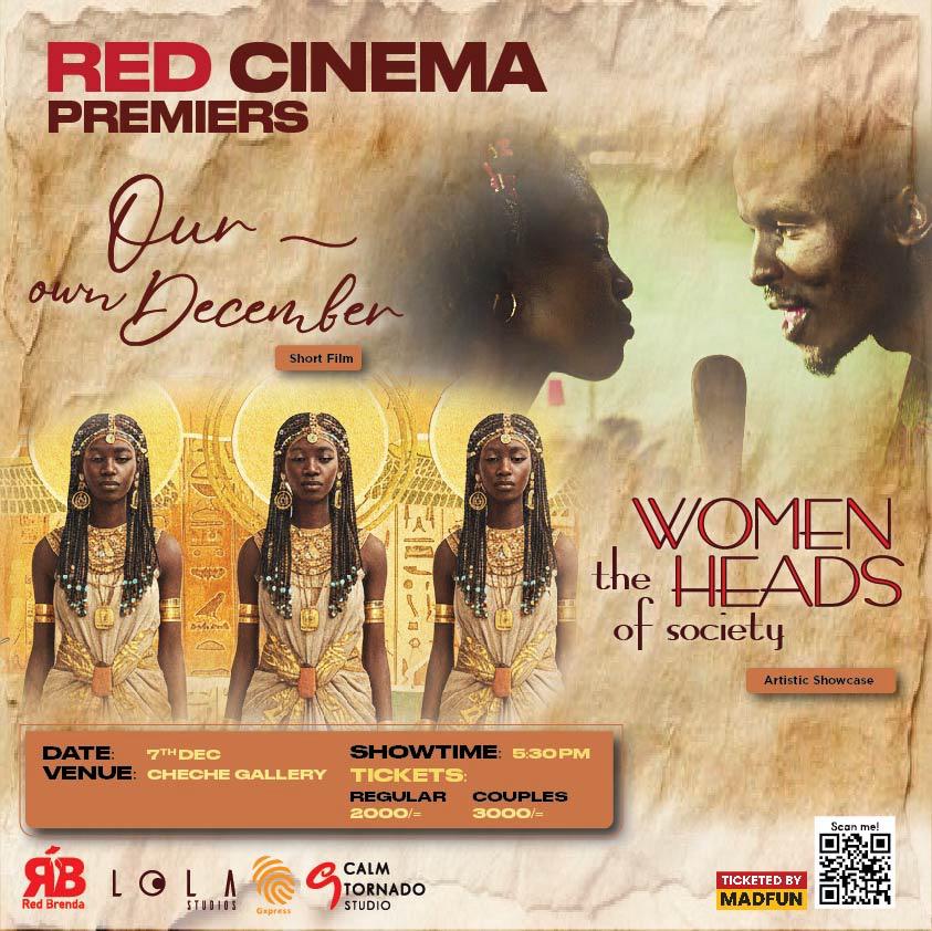 Red Cinema Premeires with its first short film:OUR OWN DECEMBER In a final act of love, an eccentric musician secretly completes an album for his girlfriend, a December gift meant to echo long after he's gone.And its first theatre performance:Women, the Heads of SocietyThis is a self discovery artistic showcase that interlinks femininity with how daily life is experienced both inside your body, around your environment and in the rest of the world all in relation to the individual.We have incorporated storytelling, music and visual graphics to tell a story that will create awareness and a new intrigue to tackling life. At the end of it, you'll find that no matter the route your life takes, you are art and art never dies. So, forget about death and allow yourself to lotus.Allow the feminine within to lead.