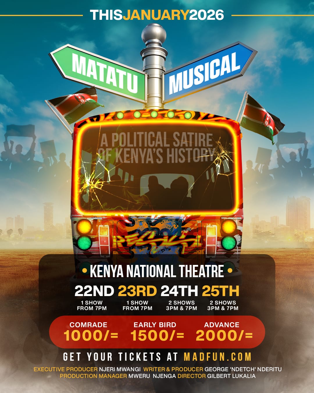 A bold stage production that tells the story of Kenya’s political journey, woven into the vibrant, chaotic world of matatu culture. It’s a journey through decades of corruption, betrayal, and resilience punctuated by rebellion, hope, and therelentless spirit of ordinary Kenyans.The musical moves through different regimes, exposing the alliances, betrayals and broken promises that have defined Kenya’s leadership. But just when the passengers seem to have lost all hope, a new force emerges the awakened generation who refuse to be passengers in a vehicle that never changes direction.