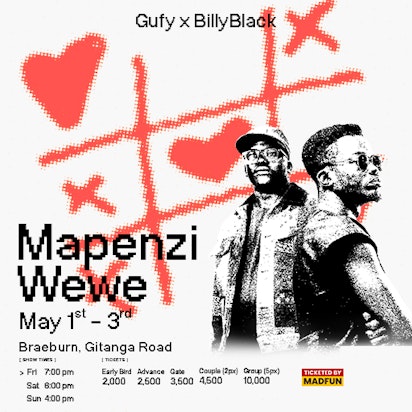 What happens when two of Kenya’s most compelling creative voices step into one fully scripted production?Mapenzi Wewe.Rooted in the rhythm of Nairobi — its softness and its edge — this concept show blends poetry, live music, and raw storytelling into a 90-minute emotional journey that will make you laugh, reflect, ache… and maybe even call someone after.“Mapenzi wewe” — a phrase we know too well.Affection. Frustration. Longing. Devotion. The kind of words that live in our streets, our texts, our silences.Through a carefully crafted theatrical narrative, Gufy Dox and Billy Black explore love in all its forms — romantic, filial, ancestral, selfless, complicated. Tender where it needs to be. Honest where it must be.Three nights only. Limited seating. Early Bird tickets are now on sale.Don’t hear about this one after it’s over.